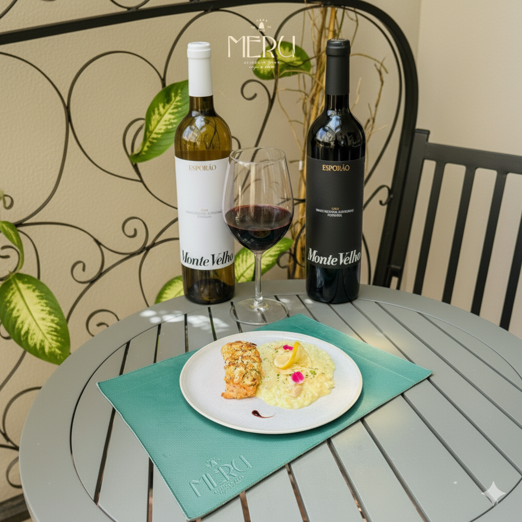 O Monte Velho Tinto, vem com seu aspecto límpido e cor rubi. Seu aroma exuberante, com notas de fruta vermelha fresca e bagas silvestres, reunindo o sabor fresco e ligeiro, uma estrutura elegante e um final equilibrado.